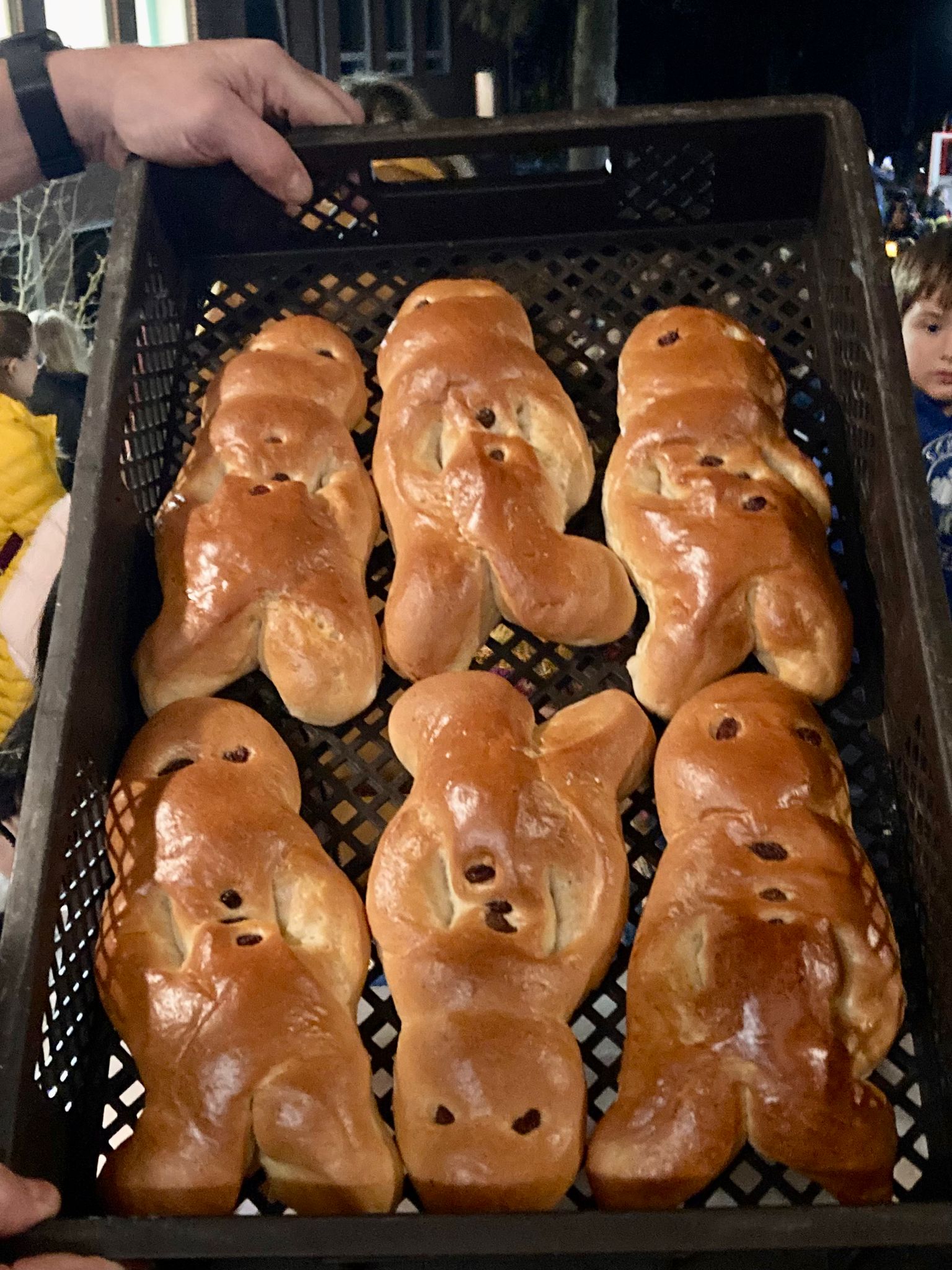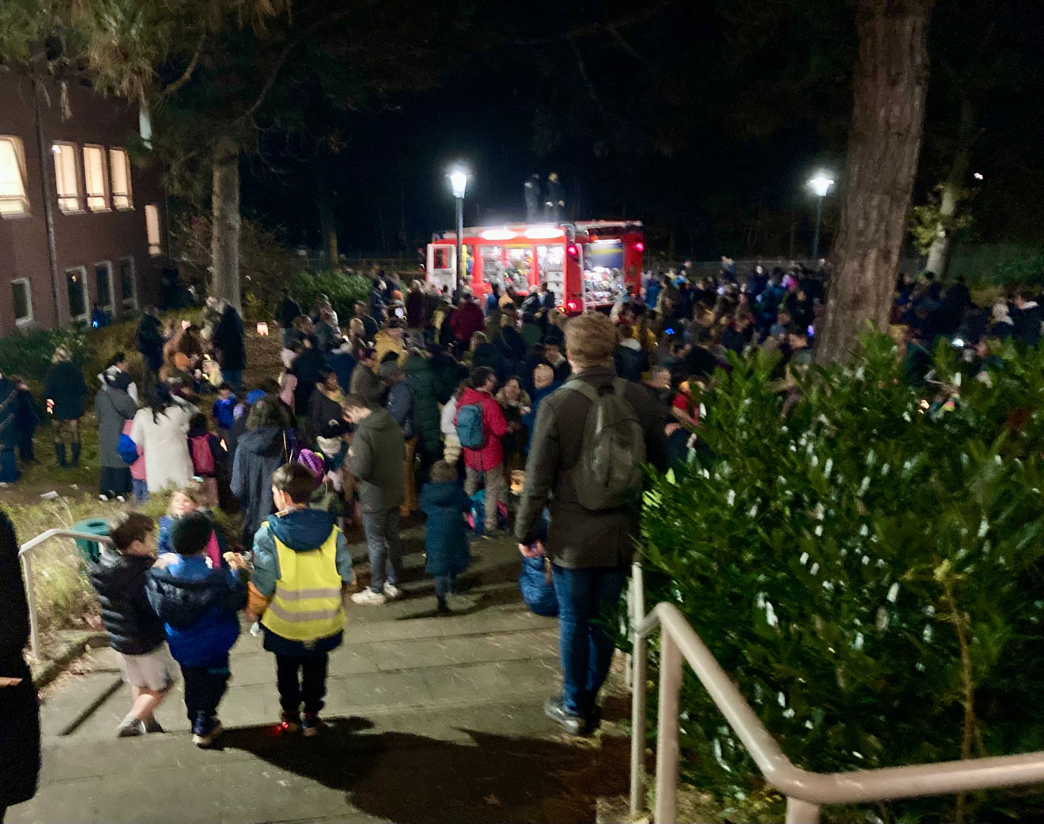 Bei warmen Getränken, einem gemütlichen Lagerfeuer und traditionellem St.-Martins-Hefegebäck, das wir miteinander teilten, kamen alle Generationen zusammen. Was wäre unser Laternenfest ohne das Feuerwehrauto der Freiwilligen Feuerwehr Lokstedt, das von den Kindern begeistert bestaunt werden durfte – ein echtes Highlight des Abends!