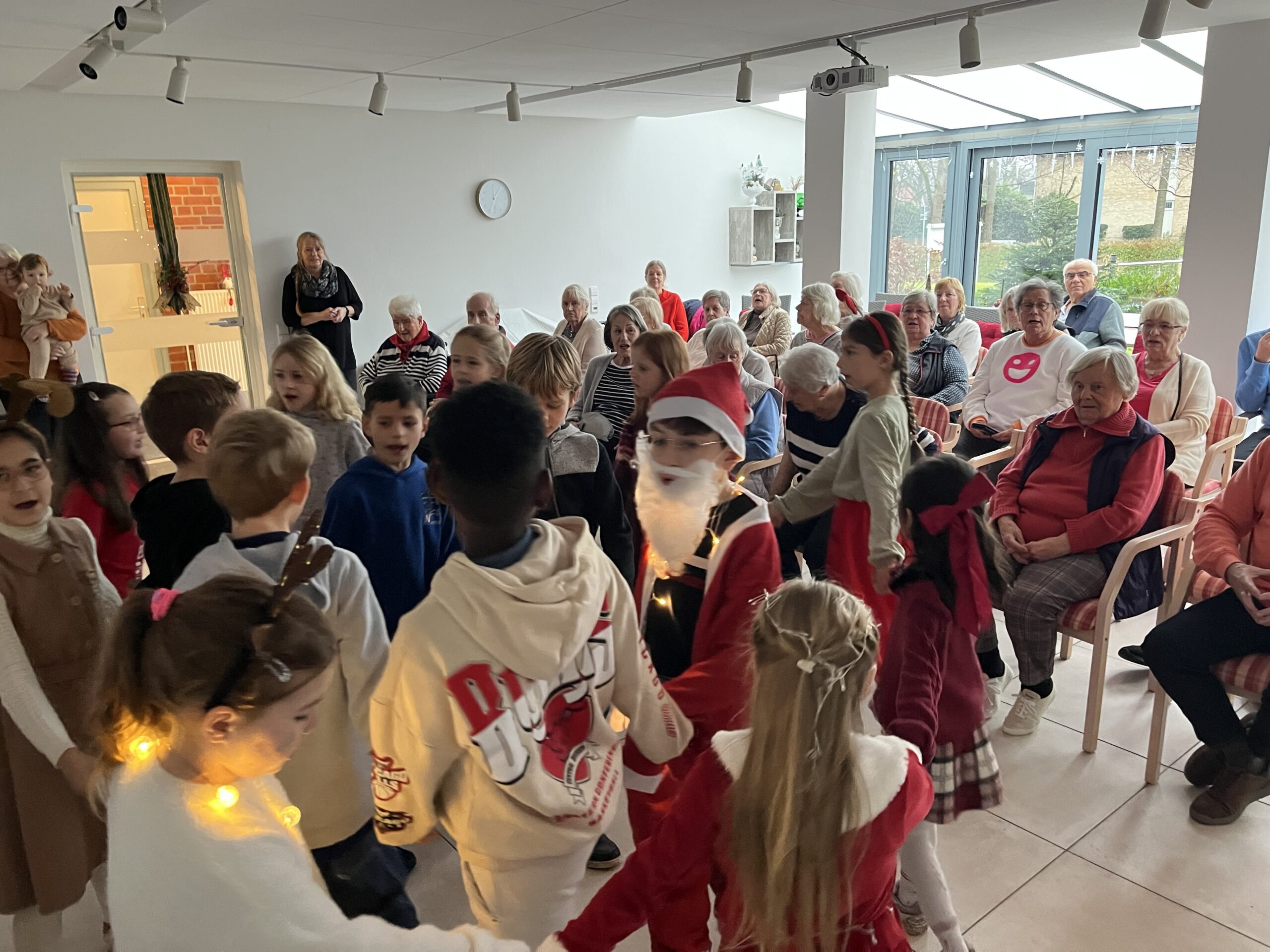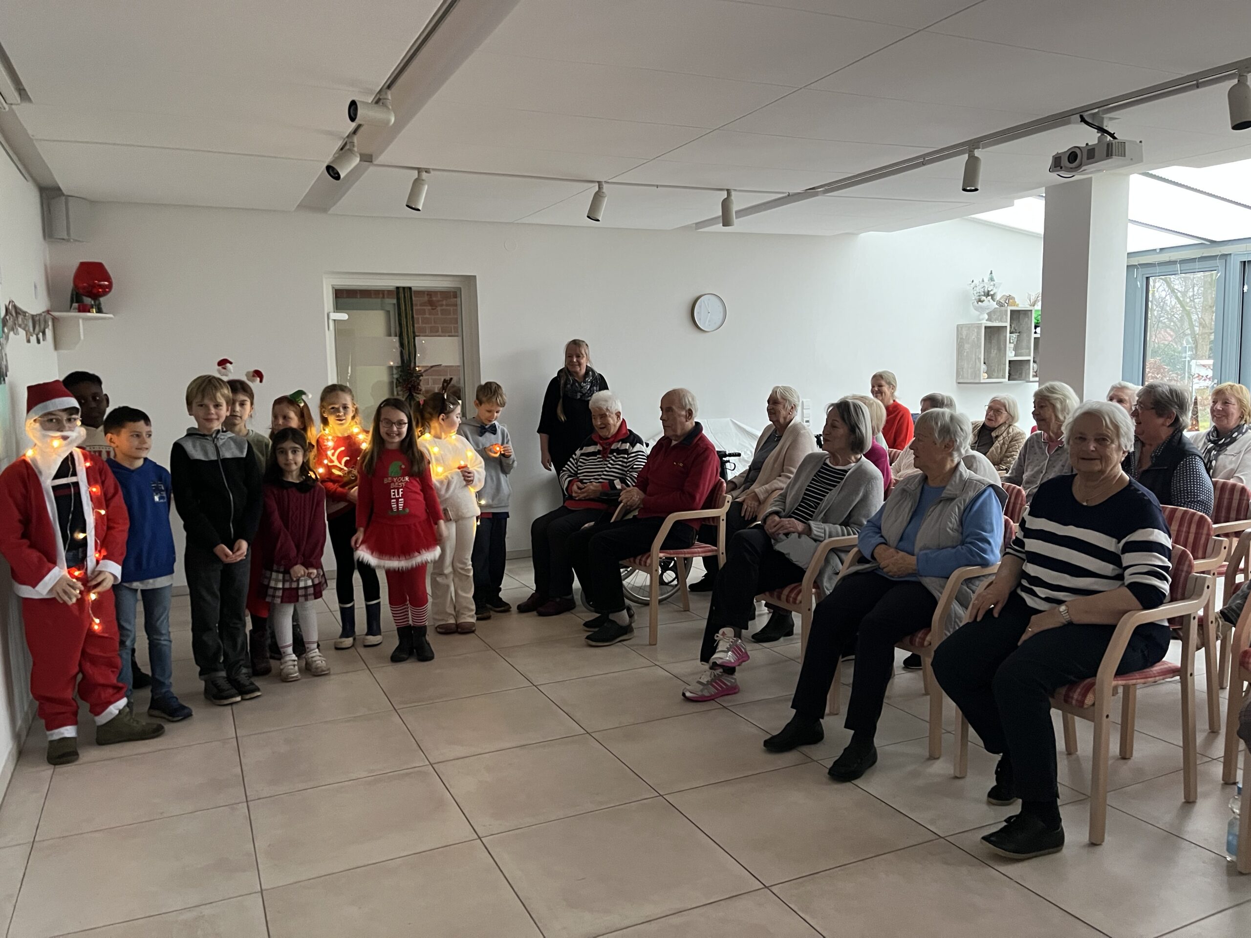 Auch in diesem Jahr brachten unsere Schülerinnen und Schüler mit dem Weihnachtssingen vorweihnachtliche Freude in die Lieselotte-Powalla-Stiftung am Hagendeel. Diese wertvolle Tradition wird seit Jahren an unserer Schule gelebt, und ist im Dezember fest im Schuljahresplaner verankert. In diesem Jahr waren die Schülerinnen und Schüler der Klasse 2b mit Frau Bär Muhlack beteiligt. Von Beginn an war die Atmosphäre vertraut und herzlich auf beiden Seiten.