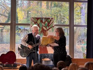 Rolf Zuckowski war da und hat mit unseren 3. und 4. Klassen sowie der IVK ein tolles Mitmachkonzert gespielt. Die 4. Klassen hatten Gitarren gebastelt und Fragen an Herrn Zuckowski gesammelt.