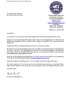 Die Weihnachtszeit endet an der Schule Hinter der Lieth immer festlich. In der Aula treffen sich die Jahrgänge VSK, 1 und 2 und tags darauf